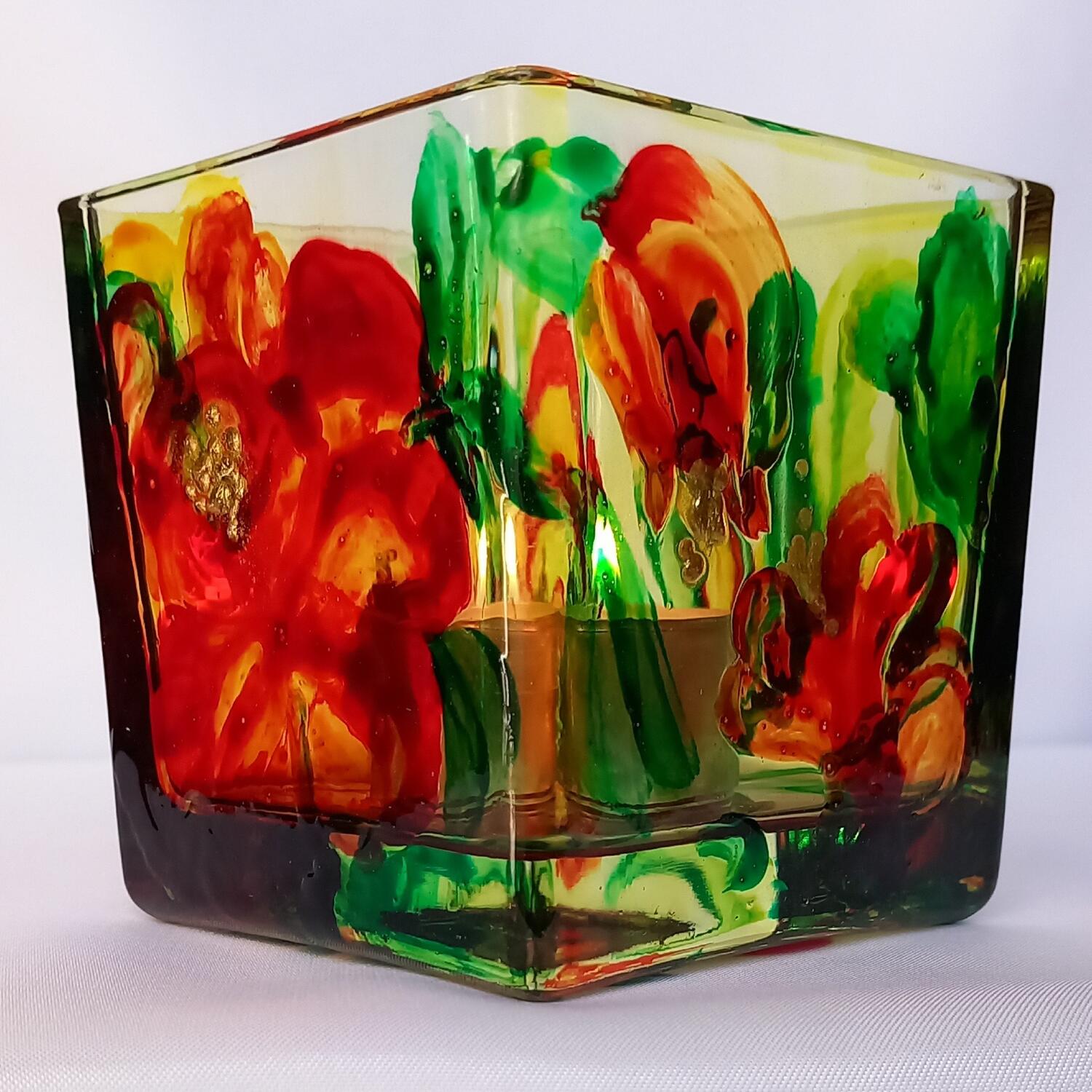 DIMENSIONI: Base cm. 7 X 7  Lati cm. 8 x 8 x 8 . Spessore vetro 3mm