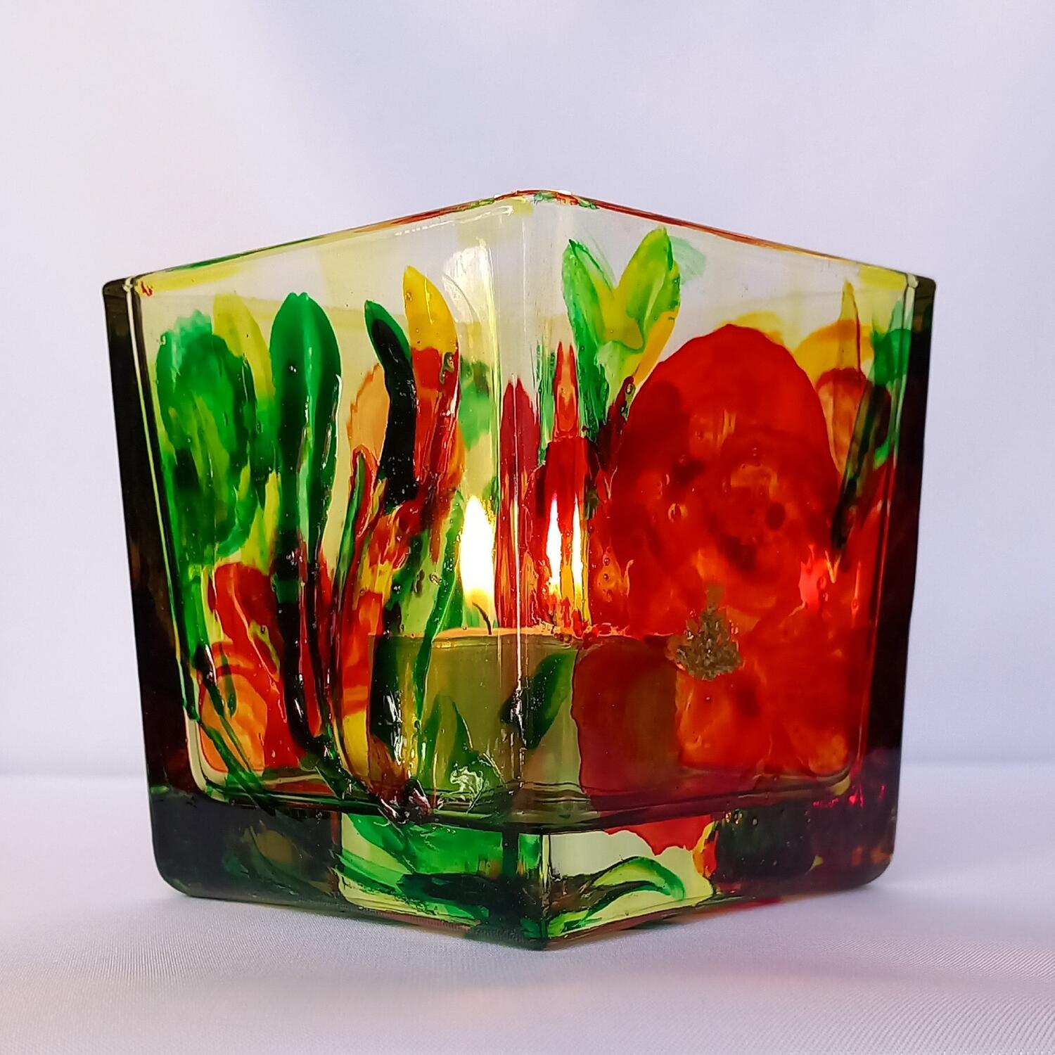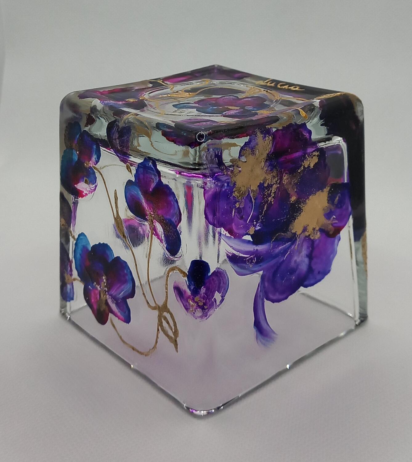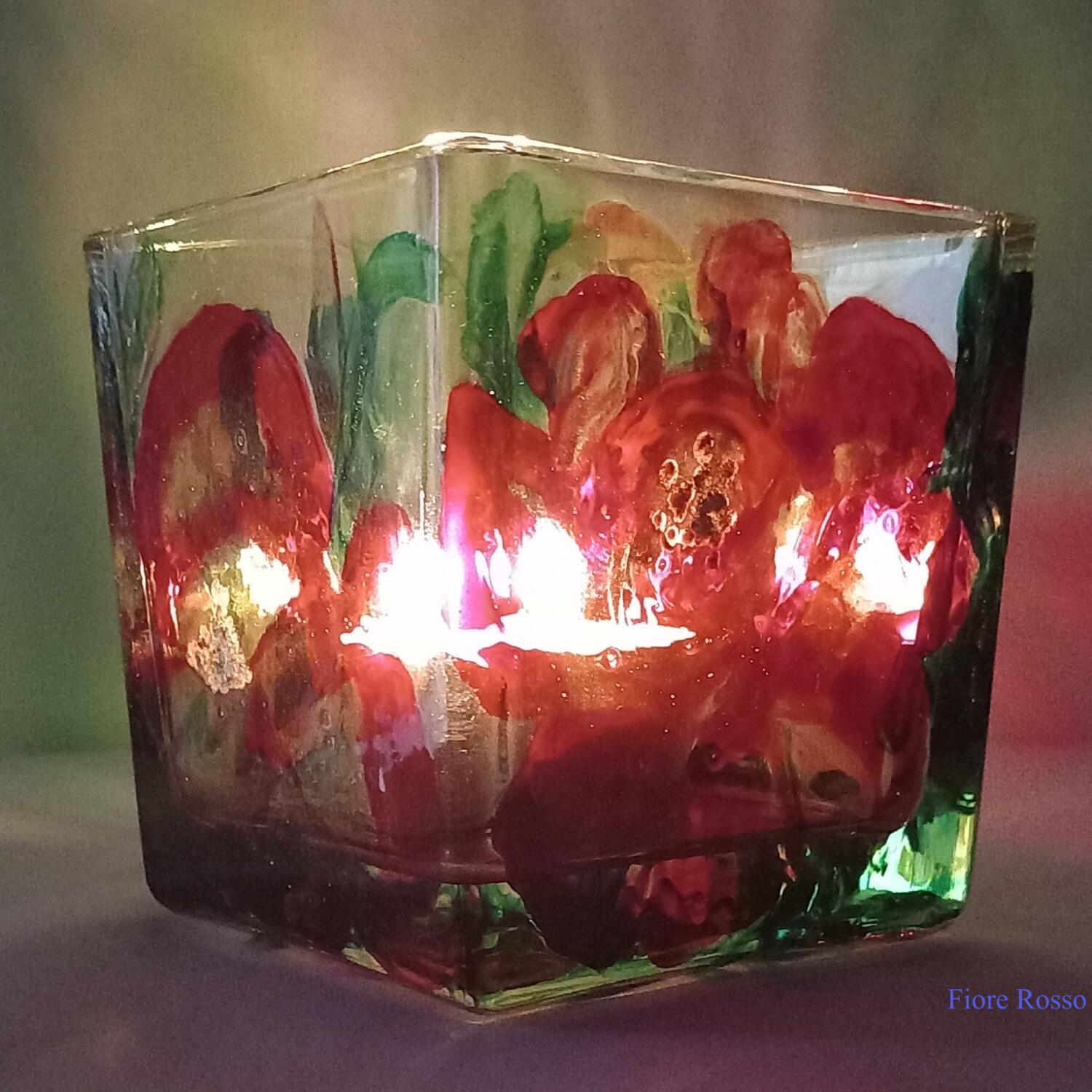 I cubi  “FIORE ROSSO ” , " SOLE LUNA" e "VIOLA"  sono ideali  come porta candela, o candela a led.